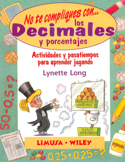 Mediante juegos y divertidas actividades será posible aprender a leer y escribir los números decimales, convertir decimales en fracciones y porcentajes. Aprender a estimar decimales mentalmente e incluso a saber cuanto dejar de propina en un restaurante. Con las actividades y pasatiempos se podrán practicar la suma, la resta, multiplicación y división de decimales y porcentajes. Dirigido a estudiantes de educación básica y público en general.