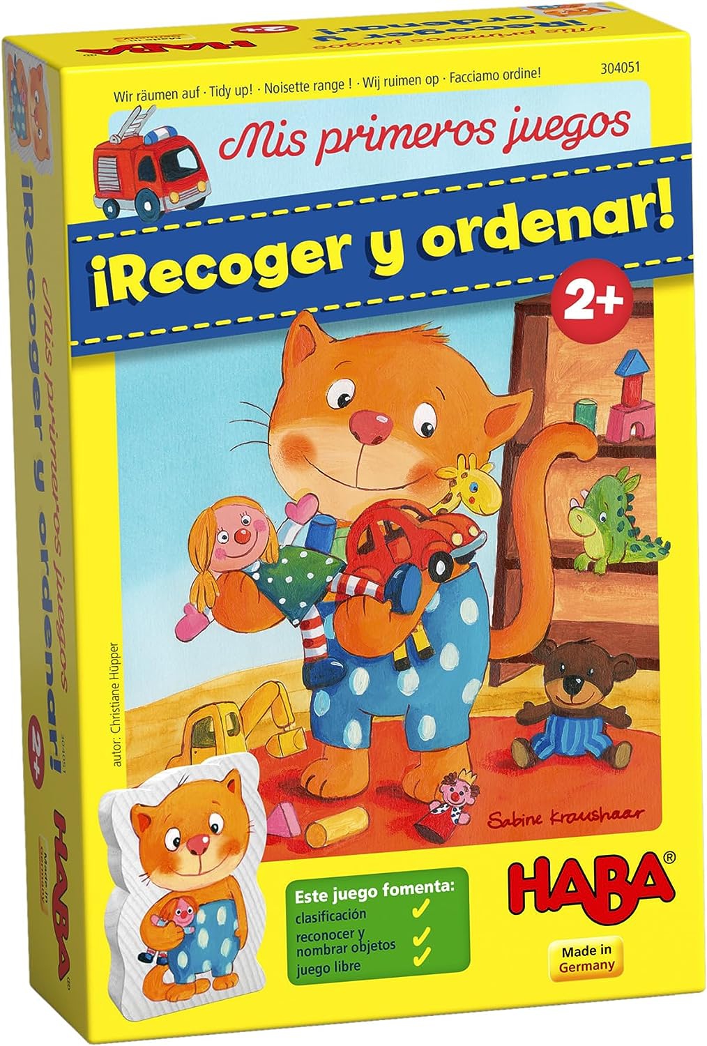 Un juego cooperativo de clasificación. Con una variante de juego de memoria y una variante competitiva. Aprender jugando a ordenar y recoger con una atractiva estantería de juguetes en 3D.