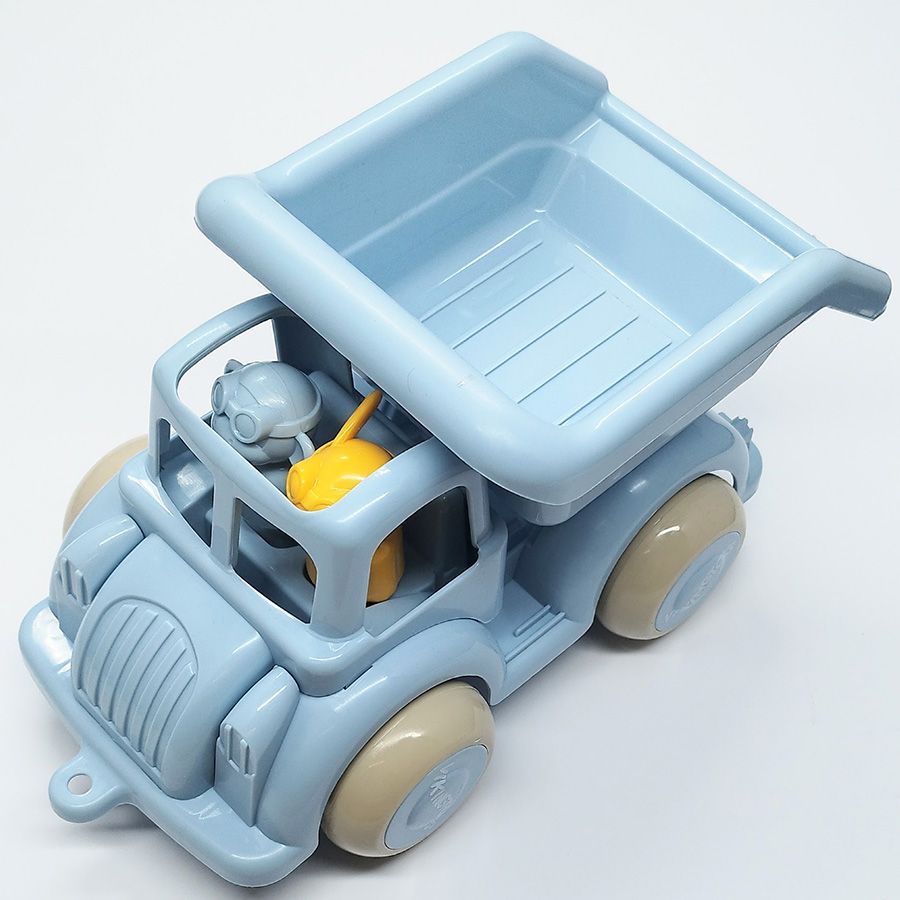 Camión hecho con plástico reciclado con volquete trasero que puede levantarse para facilitar el volcado de su carga. Robusto y durable avanza por todo tipo de terreno y en él podrás cargar arena, transportar tierra de un lugar a otro y descargar cuantas veces sea necesario.