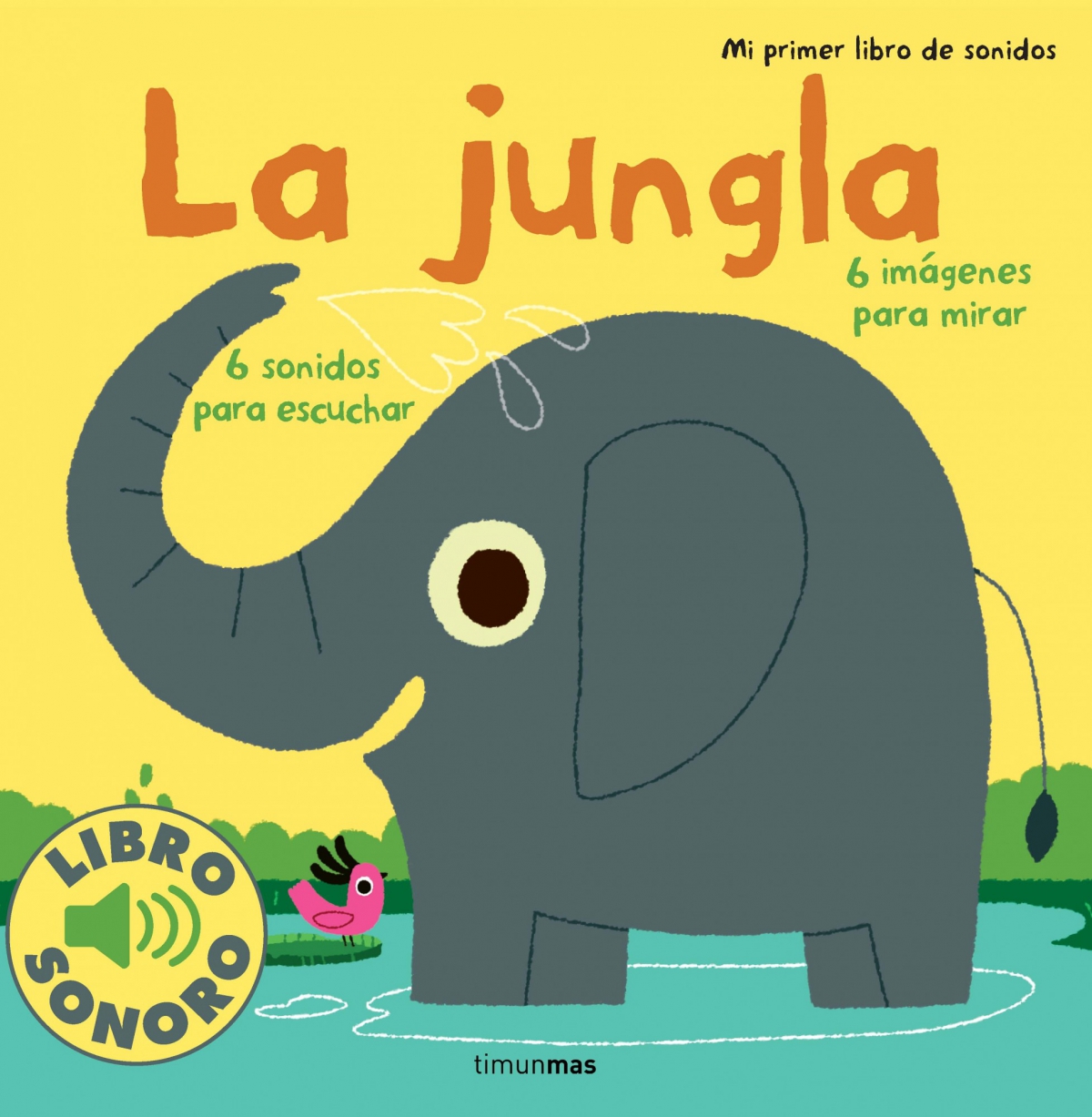 Pequeños libros sonoros para escuchar y aprender. Una palabra, una imagen y un sonido. Mi primer libro de sonidos. Pulsa el botón ¡y descubre los gritos de los animales de la jungla! El león, el hipopótamo, el mono, el elefante, el panda o el loro.